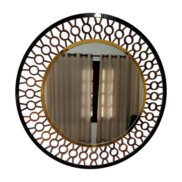 Espelho decorativo de parede redondo com moldura Premium Atenas Imbuia Imbuia, dourado, preto