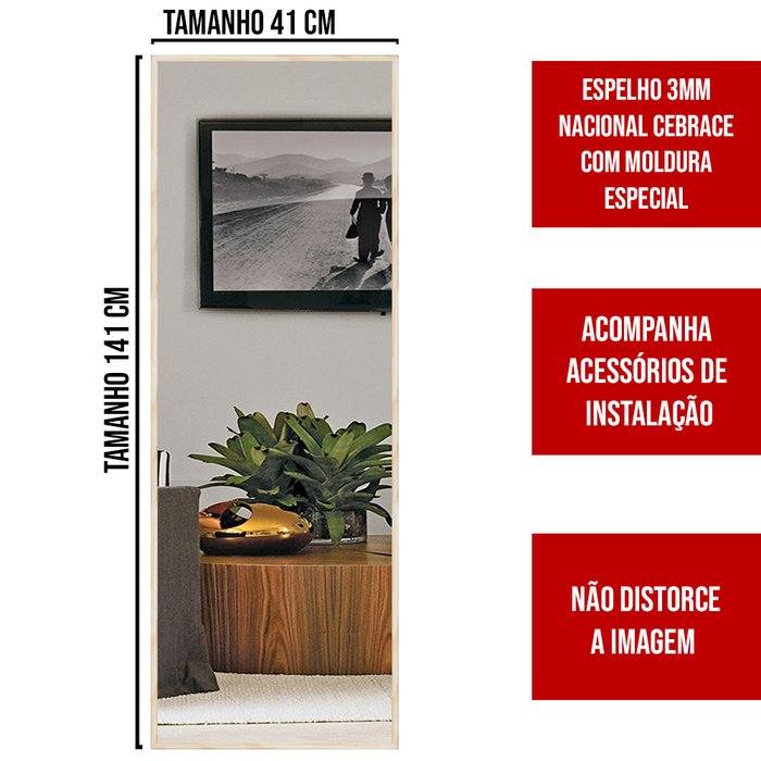 Espelho Decorativo Grande com Moldura 140x40 - Natural