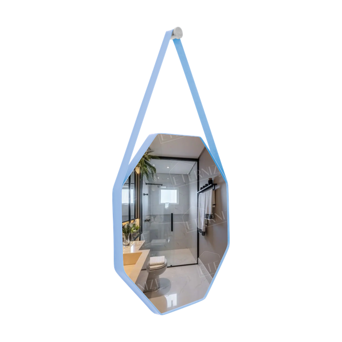 Espelho Decorativo Octogonal 60cm com Alça - Azul Bebê