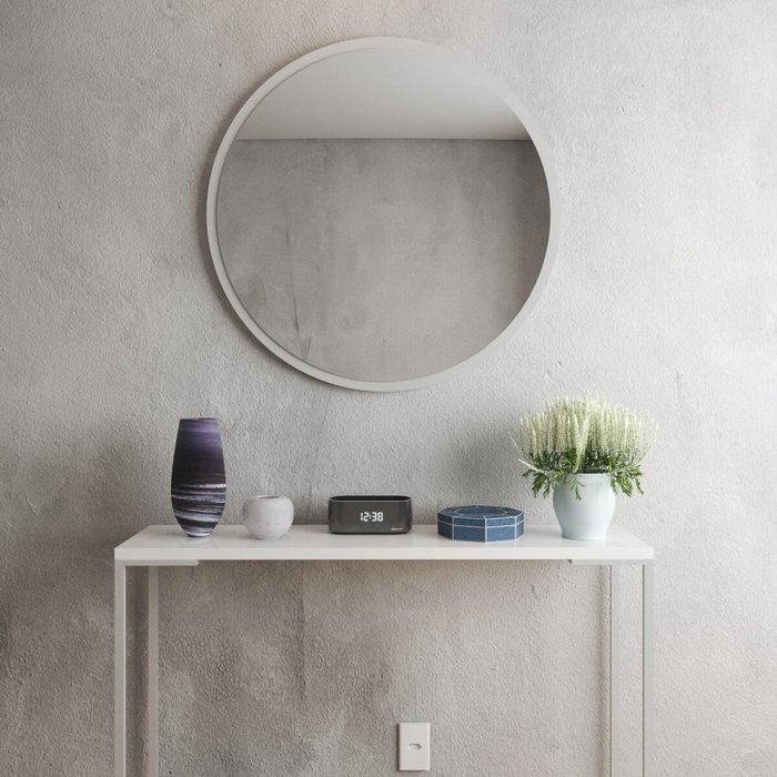 Espelho Decorativo Redondo 40 cm em MDF Off White