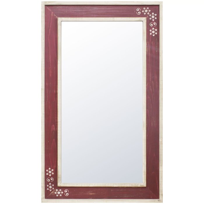 Espelho e Moldura com Desenhos Florais 62cm x 82cm Decore Ponto Vermelho/Branco