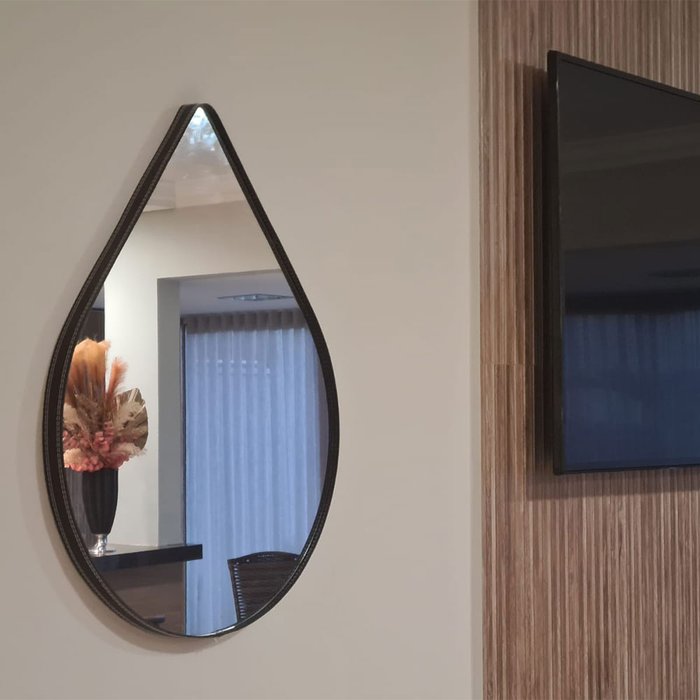 Espelho Gota 70x54cm Acabamento em Couro - Preto