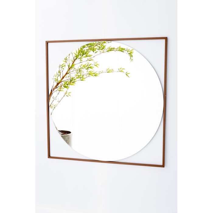 Espelho Grande Geométrico com Moldura Quarto Luxo 100x100cm Marrom