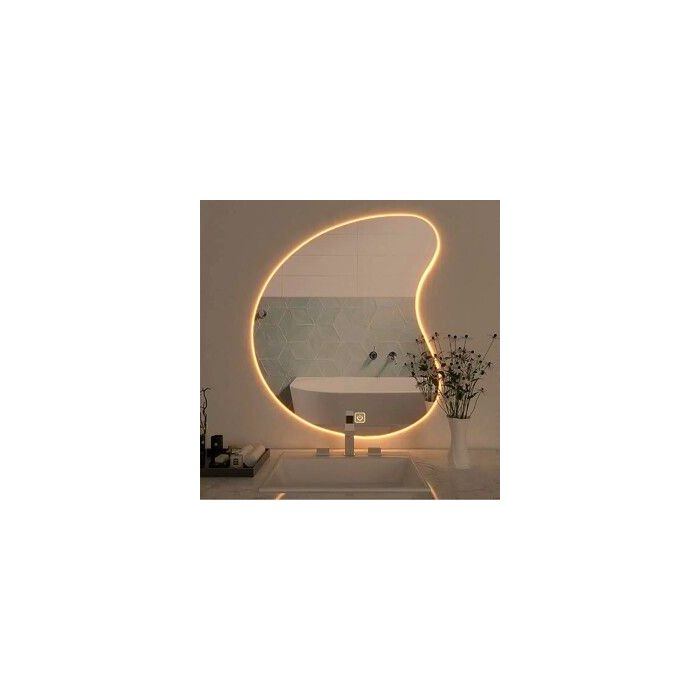 Espelho Led Quente Orgânico Ondas Luz Iluminação Botão Touch Screen 70cm Decorativo
