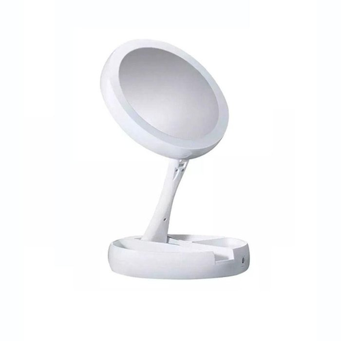 Espelho Mesa Dupla Face Luz Led Com Aumento 10x Maquiagem Redondo Espelho de Maquiagem com Led Articulável de 2 Lados com Ampliação de 10X My Fold Jin Mirror. Ideal para você fazer sua maquiagem no camarim, carro, quarto, sala e qualquer outro ambiente sem iluminação adequada!My Fold Jin Mirror é um espelho iluminado e de dois lados, sendo um lado com ampliação de 10x. Dobra e gira para fácil utilização e armazenamento.O LED brilhante acende-se em ambos os lados para iluminação perfeita da imagem.Possui local para auxiliar com os acessórios. É leve e compacto para viagens. O espelho é nítido, limpo e livre de distorção.