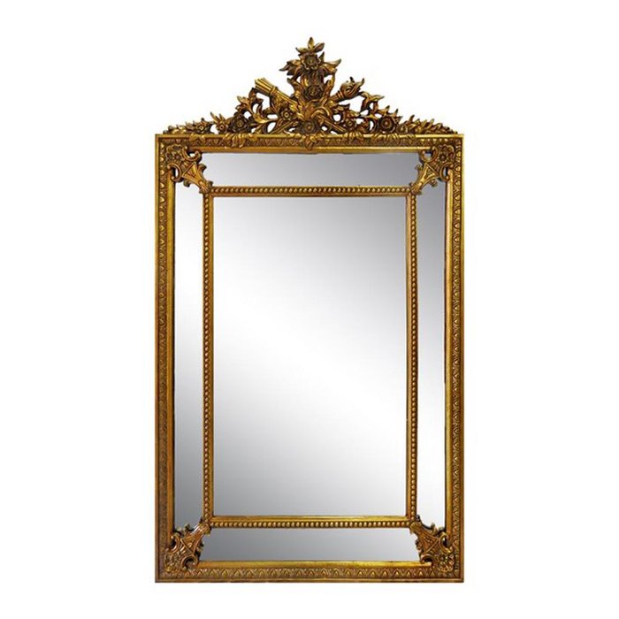 Espelho com moldura decorativa em resina dourada detalhes em relevo. Medidas: Altura: 146 cm Largura: 90 cm Profundidade: 4 cm Para conservar aspectos originais e garantir a durabilidade do produto utilize espanador ou pano macio e levemente umedecido.
