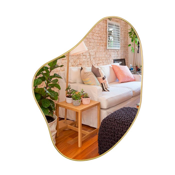 Espelho Orgânico com Moldura na Cor Dourada 0,60 X 0,80 -modelo Orgânico G2