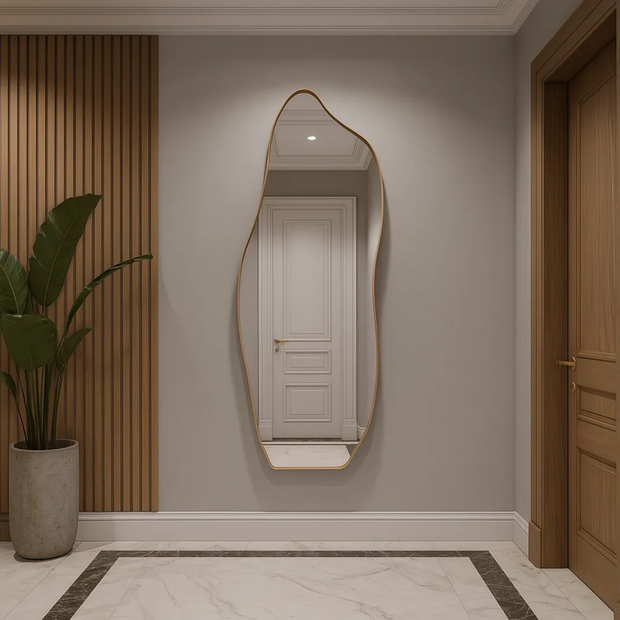 Descubra a sofisticação deste espelho grande e orgânico, com design elegante e moderno que valoriza qualquer ambiente. Com suas dimensões imponentes de 150 x 70 cm, ele não é apenas um item funcional, mas também uma verdadeira peça de destaque na decoração.A moldura metálica com acabamento refinado traz um ar escultural e contemporâneo, criando contraste marcante com a superfície espelhada de alta qualidade, que não distorce e amplia visualmente o espaço com luminosidade e profundidade.Versatilidade garantida: o espelho acompanha dois tipos de suportes – para fixação na parede ou para uso apoiado no chão, permitindo que você escolha a forma que melhor se adapta ao seu ambiente.Ideal para salas, quartos, closets ou corredores, este espelho transforma qualquer espaço em um cenário de modernidade e sofisticação.Detalhes técnicos:Altura: 150 cmLargura: 70 cmProfundidade da moldura: 3 cmEspessura do espelho: 3 mmEspelho em cristal de alta qualidadeGarantia do vendedor: 3 meses