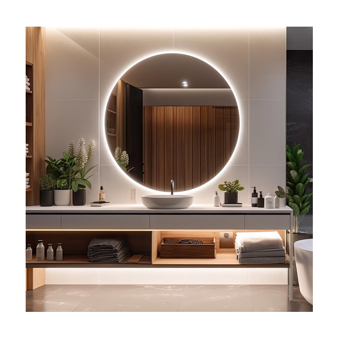 Espelho Orgânico Decorativo Lapidado com Led 90x90 Cm E08 para Sala, Quarto, Banheiro, 6000k 220v