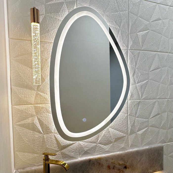 Espelho Orgânico Jateado com 3 Tons de Led e Botão Touch 45x70cm Decorativo Jateado