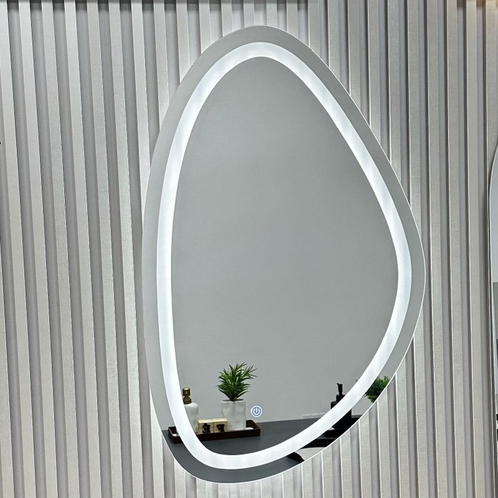 Espelho Orgânico Jateado com 3 Tons de Led e Botão Touch 51x80cm Decorativo