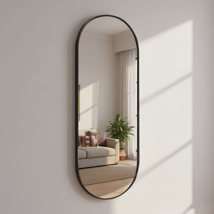 Espelho Oval 150x50cm Moldura em Couro Yescasa Preto
