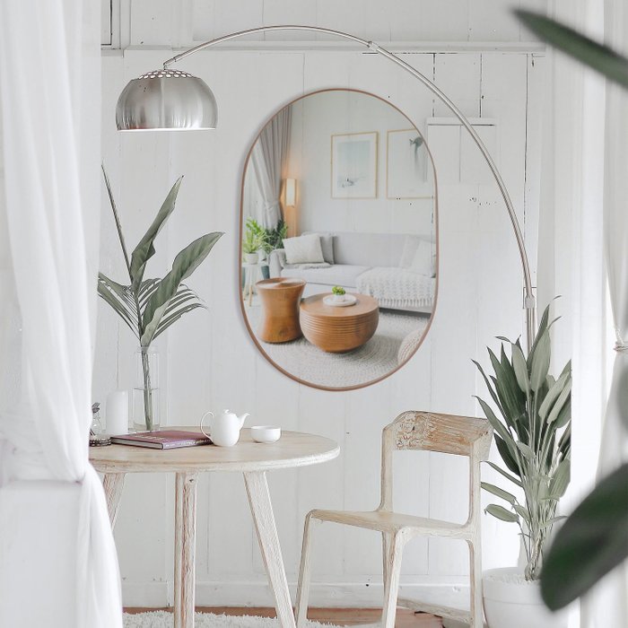 Espelho Oval 60x40cm Moldura em Couro Yescasa