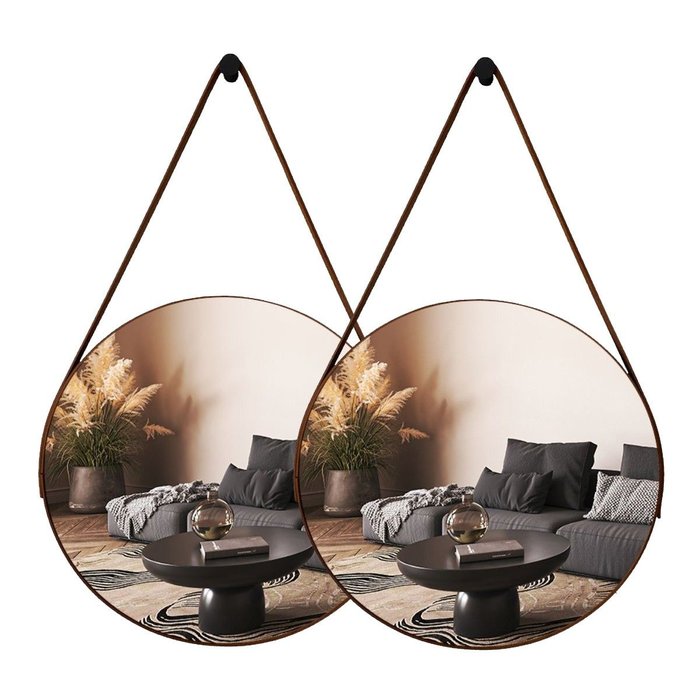 Kit com 2 Espelhos Decorativos Redondo Adnet Fundo em EVA 60cm com Suporte e Alça de Material Ecológico para Banheiro, Hall de Entrada, Escritório, Sala, Quarto, Barbearia, Salão, Studio.