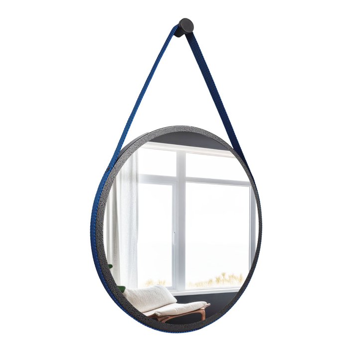 Espelho Redondo Craqueado Adnet 50cm + Suporte Gh Papel de Parede Azul Azul
