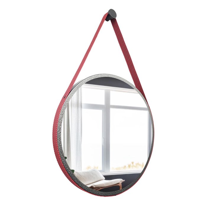 Espelho Redondo Craqueado Adnet 50cm + Suporte Gh Papel de Parede Vermelho