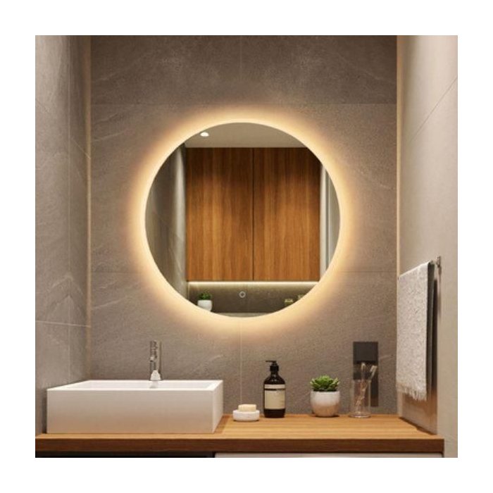 Espelho redondo com led neutro quente