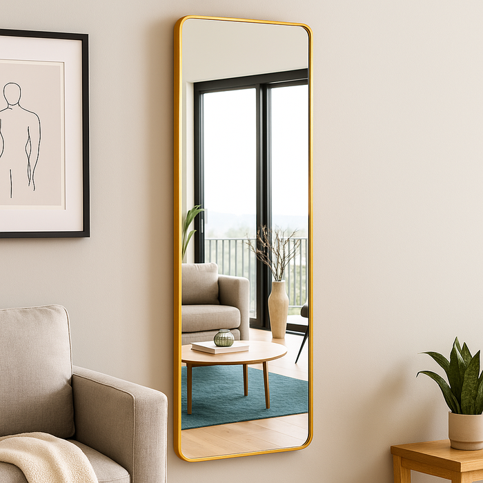 Espelho Retangular Grande 110x50cm Moldura de Alumínio Dourada Sala Hall
