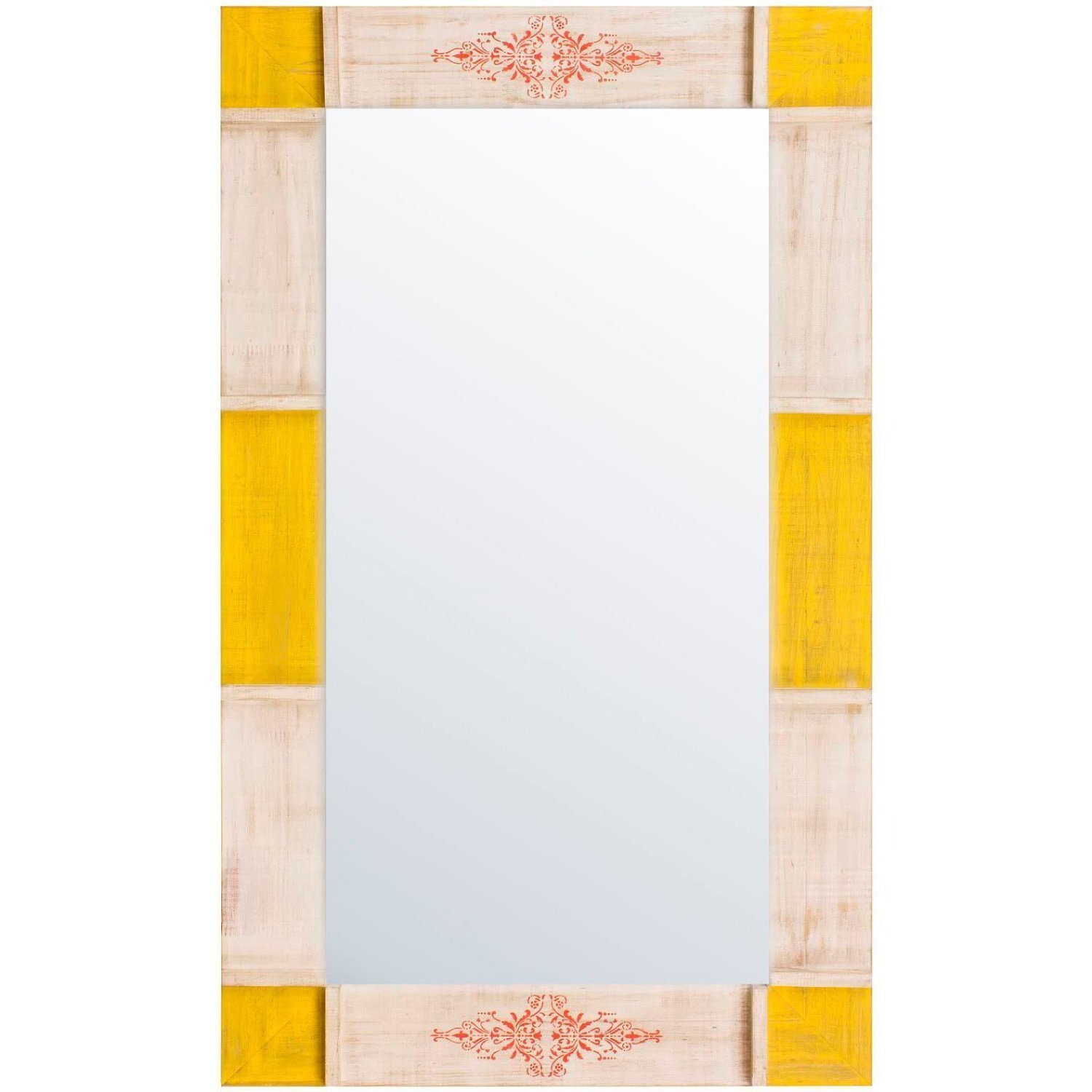 Espelho Rústico com Moldura 92cm x 72cm Decore Pronto Amarelo/Branco
