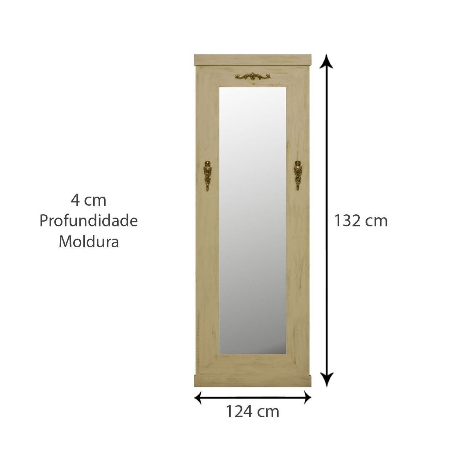 Espelho Rústico Patinado Envelhecido com Apliques 124cm x 232cm Decore Pronto Branco Patinado (Sujo)/Dourado