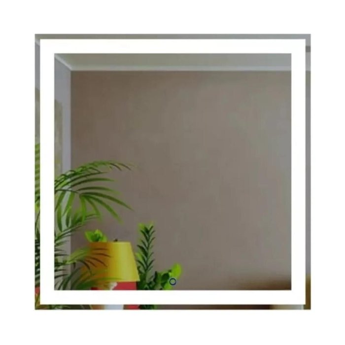 Espelho Touch Quadrado Jateado 90x90 Led Branco com Fonte