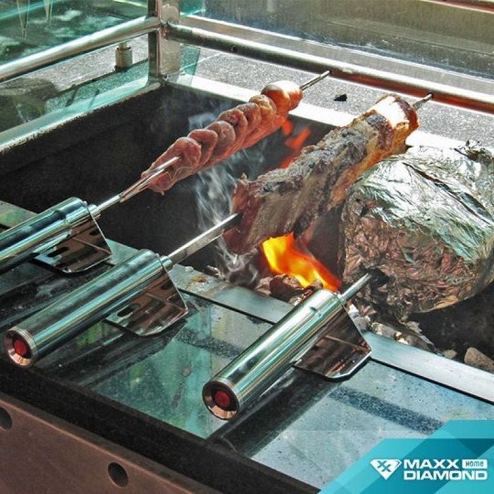 Espeto Giratório em Inox Movido A Pilha - Garfo Ajustável