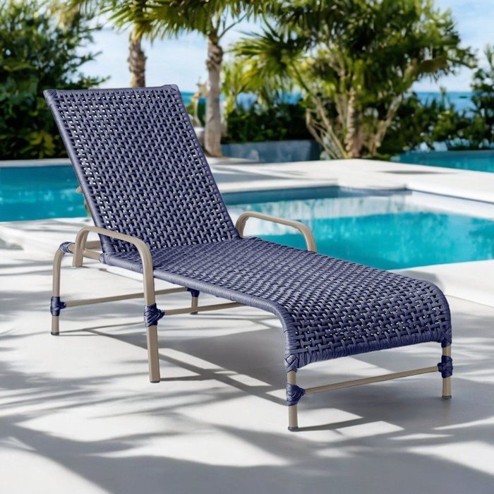 Espreguiçadeira Corda Náutica em Alumínio para Piscina Edícula Catar Azul