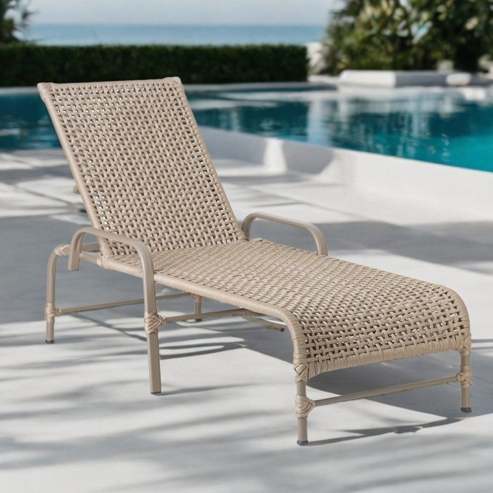 Espreguiçadeira Corda Náutica em Alumínio para Piscina Edícula Catar Bege
