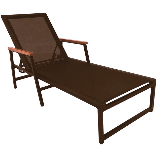 Espreguiçadeira de Piscina em Tela Sling e Aluminio Marrom Trama Móveis Marrom