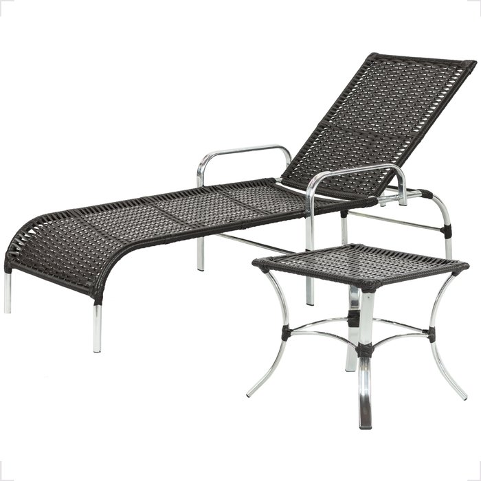 Espreguiçadeira e Mesa Catar Alumínio Piscina Praia Jardim:preto Preto