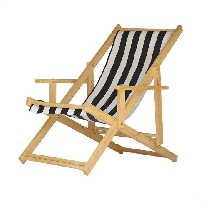 Espreguiçadeira Preguiçosa Adulto Dobrável Madeira Maciça Natural com Tecido - Listrado Preto