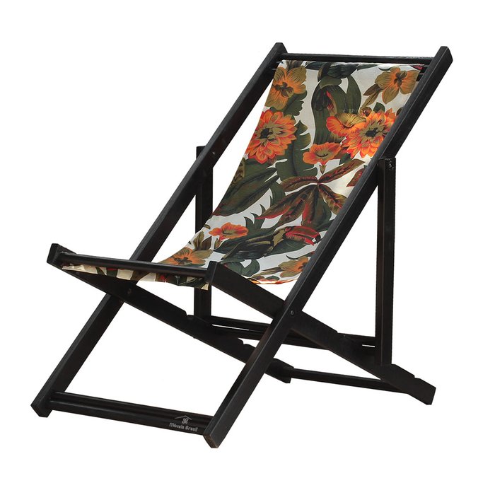 Espreguiçadeira Preguiçosa Dobrável sem Braço Black em Madeira Maciça com Tecido Tucano