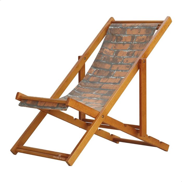 Espreguiçadeira Preguiçosa Dobrável sem Braço Mel em Madeira Maciça Tecido Impermeável Tijolos