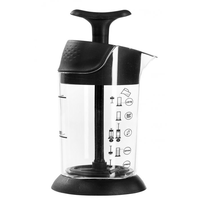 Espumador Cremeira Aerador de Leite Pressca 200ml Diversas Cores Se você não dispensa um bom café com leite, tenha sempre à mão o Espumador de Leite Pressca. Rápido e fácil de usar, dispensa o uso de eletricidade e permite que você encontre a densidade ideal para preparar seus cappuccinos, mochas e macchiatos. Com o Espumador de Leite Pressca você prepara em casa deliciosas receitas de Latte, Cappucino, Mochas e Macchiatos. Surpreenda seus amigos!<br /><br />• O Espumador de Leite Pressca é feito em plástico livre de BPA e metais pesados.<br />• Seu copo é feito em TRITAN® resistente a quedas e choques.<br />• Pode ser aquecido direto no micro-ondas.<br /><br />CARACTERISTICAS TECNICAS:<br /><br />• Capacidade: 200 ml<br />• Altura: 19 cm<br />• Diâmetro: 7 cm<br />• Peso: 165 g<br />• Facilidade: pode ir no micro-ondas<br /><br />COMO USAR:<br /><br />Rápido e fácil de usar: basta aquecer o leite e mover o êmbolo para cima e para baixo até dobrar o volume da espuma.<br /><br />1. Colocar o leite até a marca interior do copo transparente (cerca de 100 ml)<br />2. Aquecer em micro-ondas até 63ºC sem a tampa e o êmbolo<br />3. Colocar o êmbolo e agitar fazendo a espuma atingir a marca superior final do copo (isto levará cerca de 30 segundos)<br />4. Retirar o êmbolo, e dosar o leite espumado em seu café ou bebida favorita<br />5. Aprecie!