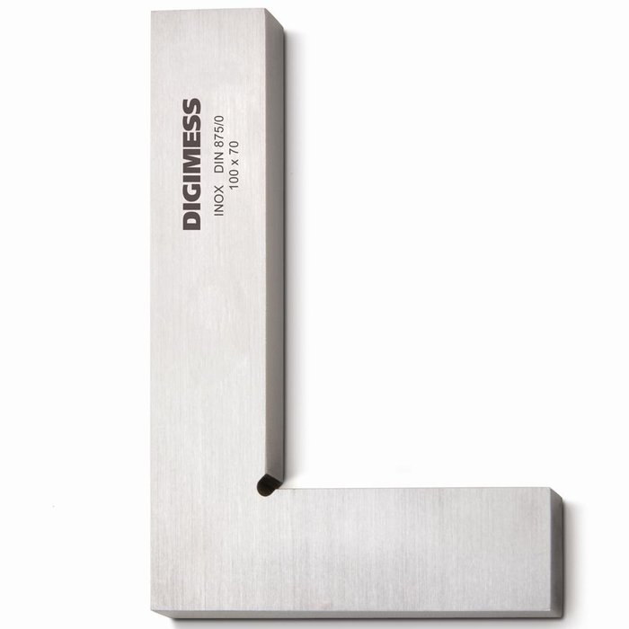 Esquadro De Precisão Plano Sem Base - Classe 0 - Cap. 75 x 50 mm - DIN 875/0 - Ref. 170.060 - DIGIMESS O Esquadro de Precisão é um instrumento utilizado para verificar o ângulo reto entre dois lados de uma peça e sua retilineidade. ESPECIFICAÇÕES: - Fabricados em aço inoxidável de alta precisão, finamente retificados e lapidados;