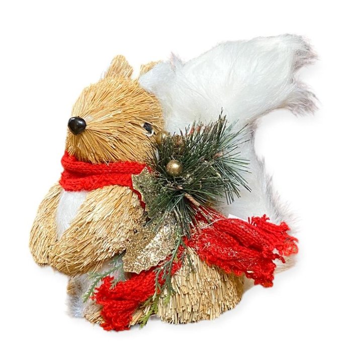 Esquilo Palha Natural Cachecol Trico e Rabo Peludo 19cm