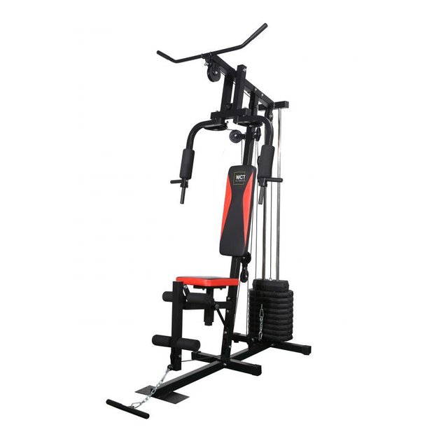Estação de Musculação de 45kg WCT Fitness PretoA Estação de Musculação de 45kg da WCT Fitness possui o melhor custo beneficio do mercado.Equipamento de musculação ideal para exercícios de circuito, ganho de massa muscular e tonificação. Exercita e tonifica os músculos braços, peitoral, costas, ombro e muitas outras variações com o peso de até 45kg.Podendo alternar entre exercícios de supino, peck deck, fly, trapézio, bíceps, tríceps e muitas outras variações de exercícios. Seu sistema de cabos reforçados, aço tubular super resistente.Permite fazer vários tipos de exercícios com mais precisão e força no conforto da sua residência ou academia. Melhora a postura do corpo, auxiliar na perda de peso, aumenta a densidade óssea e melhora o condicionamento cardiorrespiratório. Adquirindo outros puxadores para complementar a Estação de Musculação, será possível realizar exercícios para pernas e glúteos.Ficha técnica: