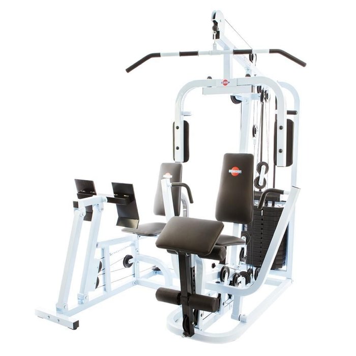 Estação De Musculação Emk 1500lr Com 100kg Legpress Kenkorp Semi profissional / Residencial A estação de musculação EMK 1500LR é ideal para quem quer se manter em forma de maneira rápida e prática, totalmente completa, permitindo executar mais de 27 tipos de exercícios para peito, costas, tríceps, braços, bíceps, ombro, panturrilhas, oblíquos, antebraços, adução, abdução, pernas, abdômen, e muitos outros.Extremamente confortável, possui regulagem de altura do banco e dos roletes das pernas.Possui um suporte para rosca scott com regulagem de altura. Assento e encosto ergonômico e anatômico com regulagem de altura e distância.