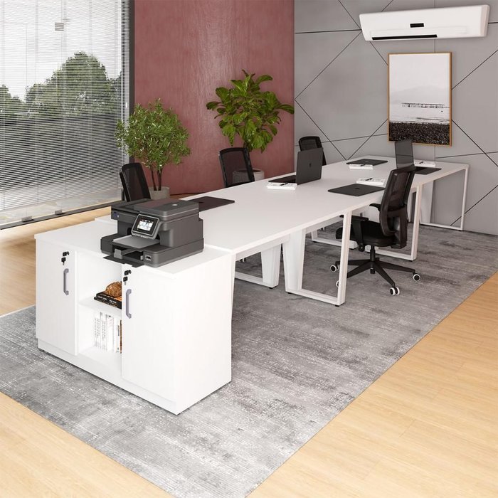 Estação de Trabalho 4,50m 6 Pessoas com Armário 2 Portas F5 Cor:branco branco