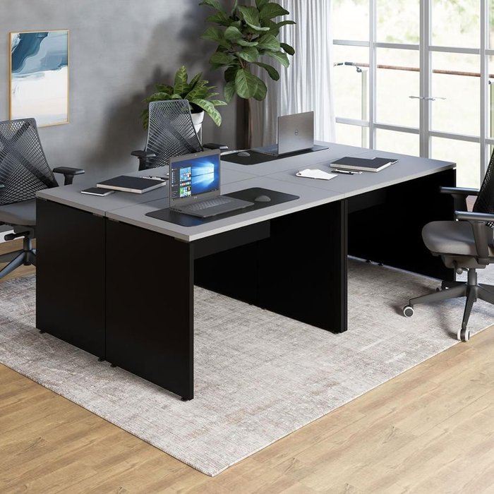 Estação de Trabalho 4 Lugares 2,20m X 1,40m Pé Painel F5 Cor:cinza Sagrado com Preto