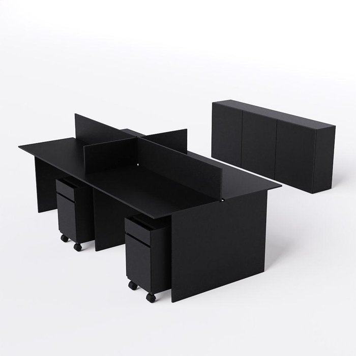 Estação de Trabalho 4 Lugares com Gaveteiro 2 Gav 3,00x1,20 e 3 Armários Cor:preto Preto