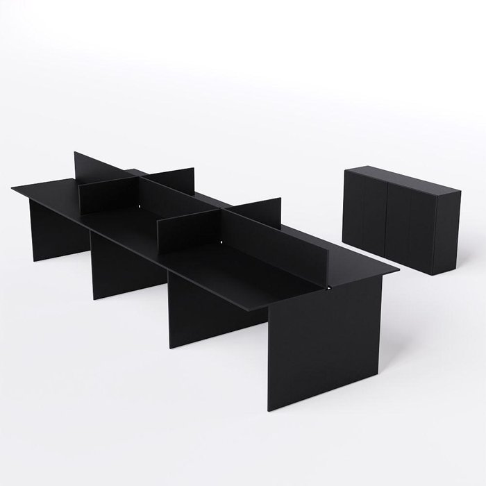 Estação de Trabalho 6 Lugares 270x120cm com 2 Armários Baixo Preto preto