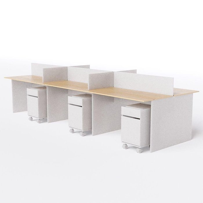 Estação de Trabalho 6 Lugares 450x120 com Gaveteiro de 2 Gavetas Cor:legno Salinas com Branco