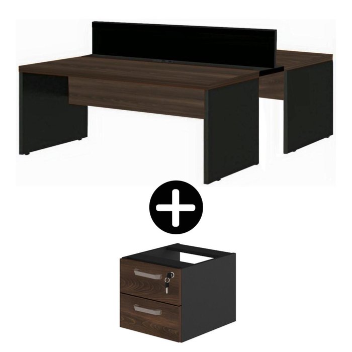 Estação de Trabalho Dupla 1,20x1,35m 02 Lugares c/ Gavetas c/ ponto de tomada - WORKSTART - MARSALA/ Marsala/preto