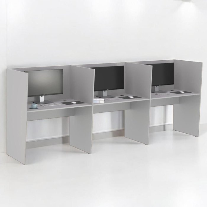 Estação de Trabalho Escritório Mesa Call Center 3 Lugares Cinza Cinza