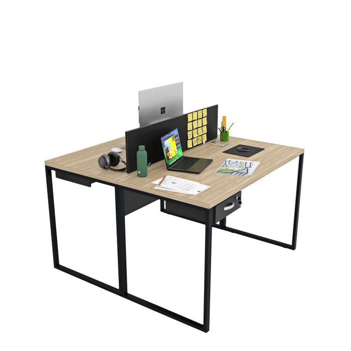 Invista no bem-estar da sua equipe com a estação de trabalho estilo industrial de 2 lugares com gavetas da Linha de Estações de Trabalho da Netmobil.