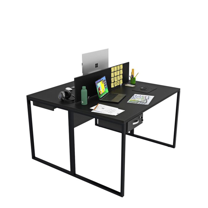 Estação de Trabalho Mesa Industrial 2 Lugares com Gaveta Netmobil - Preto