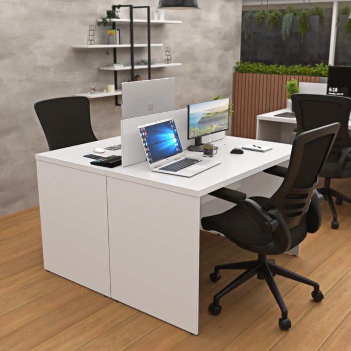 Estação de Trabalho Mesa Plataforma Escritório 1200x600 2 Lugares Netmobil - Branco Branco