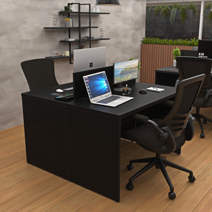 Estação de Trabalho Mesa Plataforma Escritório 1200x600 2 Lugares Netmobil - Preto