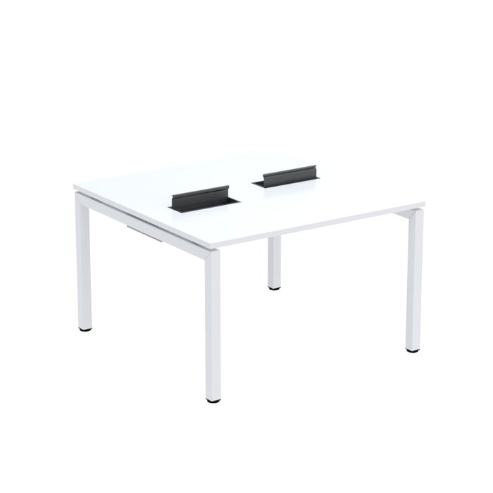 Estação de Trabalho Mesa Plataforma Escritório Dupla para 2 Pessoas com Caixa de Tomada PDC Branco